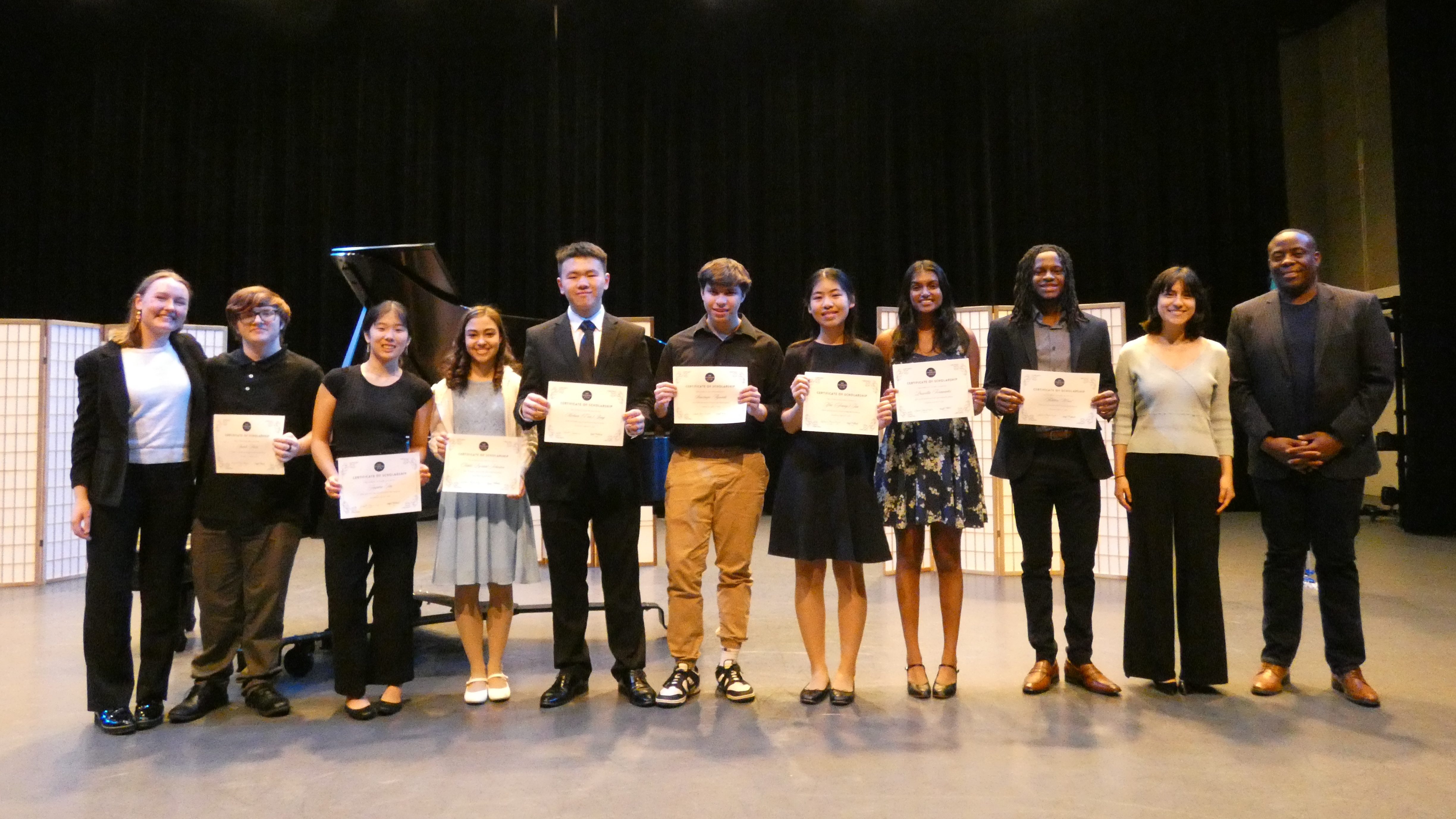 Some of our 2024-2025 Scholarship Recipients and keynote speaker Damien Crutcher at our Celebratory Benefit Concert in April 2025!